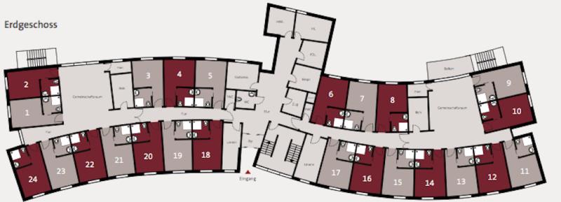 Die Pflegeimmobilie in Grävenwiesbach bei Frankfurt am Main wird als dreigeschossiger Neubau realisiert. Das Gebäude verfügt über insgesamt 72 Pflegeappartements als Einzelzimmer. Große Fenster und die moderne Gestaltung sorgen für ein angenehmes Raumklima. Jedes Pflegeappartement wird über einen geräumigen Wohnraum und ein eigenes Badezimmer verfügen. Die vorhandenen Gemeinschafts- und Aufenthaltsflächen bieten Raum für entspannte Unterhaltungen. Darüber hinaus befinden sich noch Balkone und Terrassen im Gebäude. Die hauseigene Küche versorgt die Bewohner täglich mit frischen Speisen.