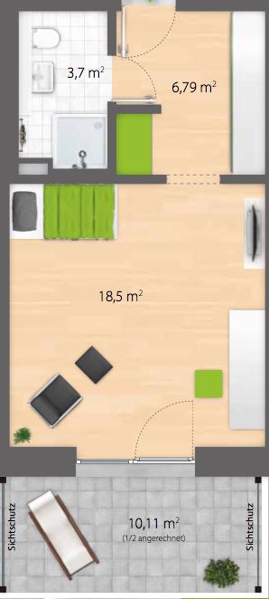 Das Objekt "Like Apart" wird nach modernen Richtlinien saniert. Die schlüsselfertige Übergabe findet nach den abgeschlossenen Maßnahmen statt. Die Appartements haben eine Größe von rund 33 Quadratmeter, verfügen überwiegend über Balkone und teilen sich auf 2 Gebäudekomplexe auf. Durch die Bodentiefenfenster gelangt schönes, helles Tageslicht in die Räume. Das geräumige Bad verfügt über eine Dusche mit Echtglasduschkabine und einem hochwertigen WC und Waschbecken. Als Besonderheit gilt der traumhafte Ausblick zum Golfplatz in Ost- oder Westausrichtung.