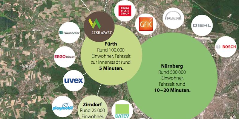 Die 121.000 Einwohnerstadt Fürth, bildet mit Erlangen und Nürnberg ein so genanntes Städtedreieck. In der Metropolregion sind über 160.000 Unternehmen ansässig. Darunter sind auch weltbekannte Unternehmen, wie Puma, Adidas, Playmobil, Siemens und viele mehr. Durch diese Namenhaften Unternehmen und die guten Bildungseinrichtungen, konnte der Bevölkerungszulauf in den vergangenen Jahren stetig erhöht werden. Die vielen Sportveranstaltungen, Museen oder Musikfestivals lassen auch in der Freizeit keine Wünsche offen. Zudem lädt die umgebe Landschaft, durch ihre schönen Wander- und Radfahrwege, zu einem kleinen Abenteuer ein. Es ist sogar möglich mit dem Fahrrad über die gut ausgebauten Fahrradwege nach Erlangen oder Nürnberg zu gelangen. Auch die restliche Infrastruktur ist optimal. Über die Bahn und die angrenzenden Autobahnen, gelangt man problemlos in die nächst größeren Städte.