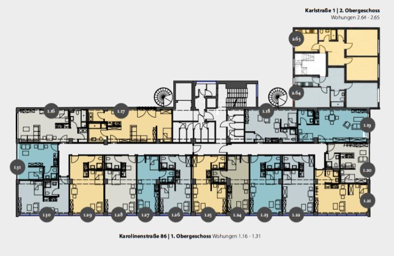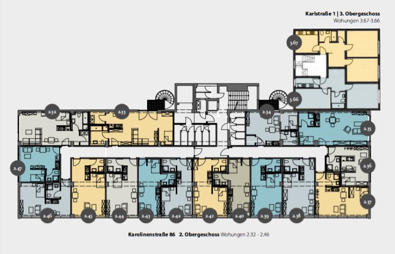 Das Objekt in Fürth ist ein Bestandsobjekt mit insgesamt 54 Einheiten. Diese Einheiten sind größtenteils seit 2013 von ihren Mietern bezogen worden. Im 3. Obergeschoss entstehen 13 weitere Wohneinheiten. Somit stehen 67 Apartments zum Verkauf.