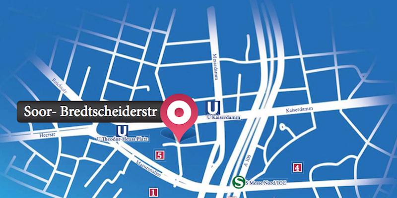Gute Anbindungen des öffentlichen Nahverkehrs sind mit den U-Bahnhöfen am Theodor-Heuß-Platz und Kaiserdamm sowie der S-Bahn-Station Messe Nord gewährleistet. Die Stadtautobahn ist ebenfalls in wenigen Fahrminuten zu erreichen.