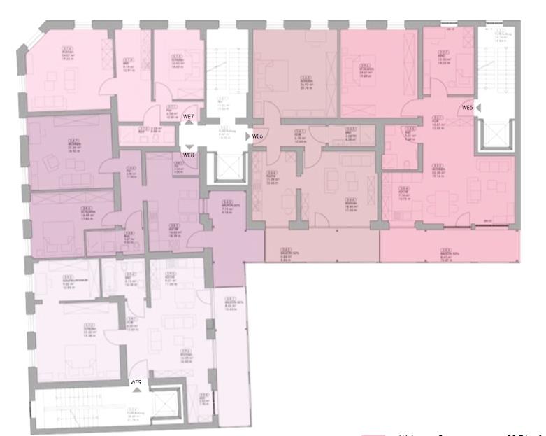 Die modern geschnittenen Wohnungen bieten ausreichend Platz. Dabei verfügen die 14 Eigentumswohnungen über eine Wohnfläche von 53qm bis 89qm. Die vier luxuriösen Maisonette-Wohnungen erstrecken sich von 144qm bis 160qm Wohnfläche. Die großen, sonnendurchfluteten Fenster, werden straßenseitig nach aktueller Energieverordnung 3-fach verglast. Der Bodenbelag der Terrassen / Balkone wird aus einem Stein- oder Holzbelag sein. Alle Wohnungen verfügen über eine Fußbodenheizung. Die hochwertig ausgestatteten Badezimmer haben zusätzlich noch einen Handtuchtrockner. Als Besonderheit ist es in den Maisonette-Wohnungen möglich einen Kamin einzubauen.