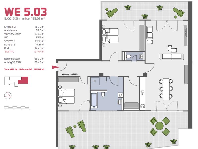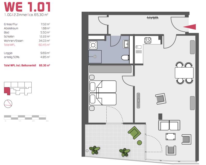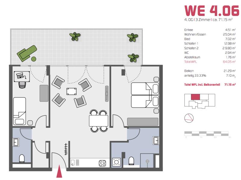 Bodentiefe Fenster, hohe Decken, helle Räume und noch vieles mehr erwarten Sie beim Kauf einer Wohneinheit. Die Decken werden weiss gestrichen und als Bodenbelag wird Parkett verlegt. Jede Wohnung verfügt über mindestens ein Schlafzimmer, ein Wohn- und Essbereich und einen Balkon oder eine Terrasse.