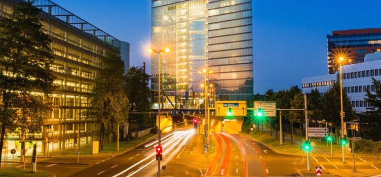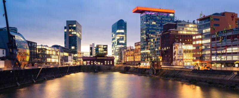 Mit knapp 600.000 Einwohnern ist die Landeshauptstadt Düsseldorf die zweit größte Stadt in Nordrhein-Westfalen. Das Stadtbild wird auch durch zahlreiche Hochhäuser und Kirchtürme, den 240 Meter hohen Rheinturm, viele Baudenkmäler und sieben Rheinbrücken geprägt. In der Altstadt findet man viele Häuser, die unter Denkmalschutz stehen. Weitere erhaltene historische Ortskerne können die Stadtteile Kaiserswerth und Gerresheim vorweisen. Düsseldorf zählt zu den fünf wichtigsten international stark vernetzten Wirtschaftszentren Deutschlands und ist attraktiver Standort für viele börsennotierte Unter- nehmen, darunter die DAX-Konzerne E.ON und Henkel.