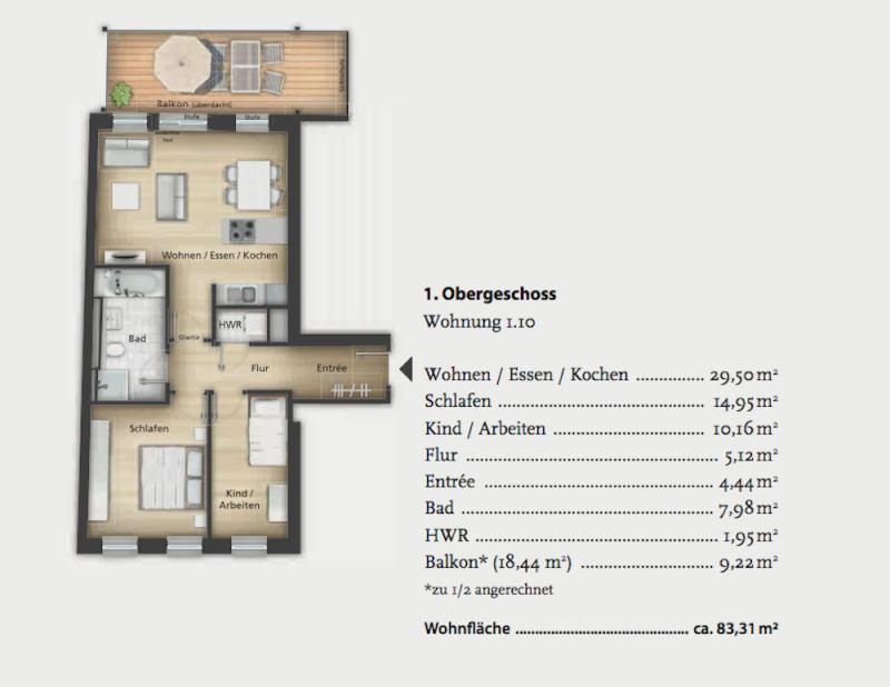 Zu den Qualitätsmerkmalen gehört das die Sanitäranlagen mit Markengarnituren ausgestattet werden. Die Fußbodenheizung bietet weiteren Komfort und befreit die Wohnräume von lästigen Heizkörpern. Die Teils bodentiefe Verglasung erhellt die Räumlichkeiten auf natürliche Weise. Größenteils verfügen die Wohnungen über Balkone. Diese sind in den beruhigten Innenhof ausgerichtet.