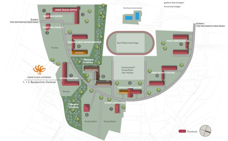 Im "Metropolitan Park - Park Place Lounges" werden Wohnungen zum Wohlfühlen gebaut. Die städtische Lage und die direkte Nähe zu Naherholungsgebieten machen diese Wohnungen einzigartig. Die 48 Wohnungen in den Denkmalimmobilien Berlin werden hell und modern gestaltet. Die modern geschnittenen Räume, werden durch das einfallende Tageslicht perfekt in Szene gesetzt. Die durchdachten Grundrisse verleihen den Wohnungen eine ganz besondere Atmosphäre. Um mit Freunden, Bekannten oder der Familie einen gemütlichen Abend zu verbringen, wurde die exklusive Barbecue-Lounge geschaffen. Diese überdachte Lounge bietet den passenden Rahmen für eine gesellige Runde. Ein zusätzlicher freier Grillplatz, diverse Lounge-Möbel und ein offener Kamin stehen den Bewohnern ebenfalls zur Verfügung. Angrenzend an die eigenen vier Wänden können auch Sport- und Freizeitmöglichkeiten wahrgenommen werden.