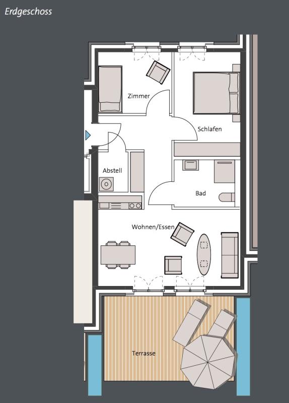 Die großen Fenster erhellen jeden Raum und die Badezimmer werden mit hellen Fliesen ausgestattet. Im Wohnbereich wird helles Parkett verlegt. Die bodentiefen Fenster erhellen das Wohnzimmer auf natürliche Art und Weise und ermöglichen den Austritt auf die Terrasse oder den Balkon. Das geräumige Schlafzimmer lässt keine Wünsche offen. Auch hier haben wir die beliebten bodentiefen Fenster, die einen herrlichen Ausblick garantieren. Zudem wird auch im Schlafzimmer helles Parkett verlegt.