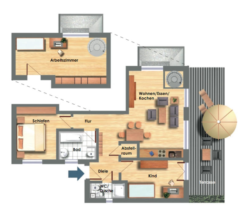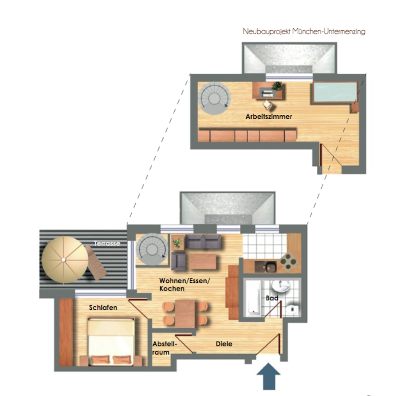 In München-Untermenzing wird ein Mehrfamilienhaus mit 10 modern geschnittenen Eigentumswohnungen realisiert. Der Abschluss des Baus ist für 2017 geplant. Die Wohnungen werden eine Größe von 55 qm bis 118 qm vorweisen können. Helle und gut geschnittene Räume lassen ein Wohngefühl der Extraklasse aufkommen. Die Ausstattung wird gehoben sein. Echtholzparkett sowie Fußbodenheizungen gehören zum Standard. Jede Eigentumswohnung wird über einen Balkon, eine Terrasse oder Dachterrasse verfügen. Die im Erdgeschoss liegenden Wohnungen haben den weiteren Vorteil eines Gartens, der mitgenutzt werden kann. Das Mehrfamilienhaus wird einen Fahrstuhl besitzen, von dem aus jede Wohnung erreichbar sein wird.